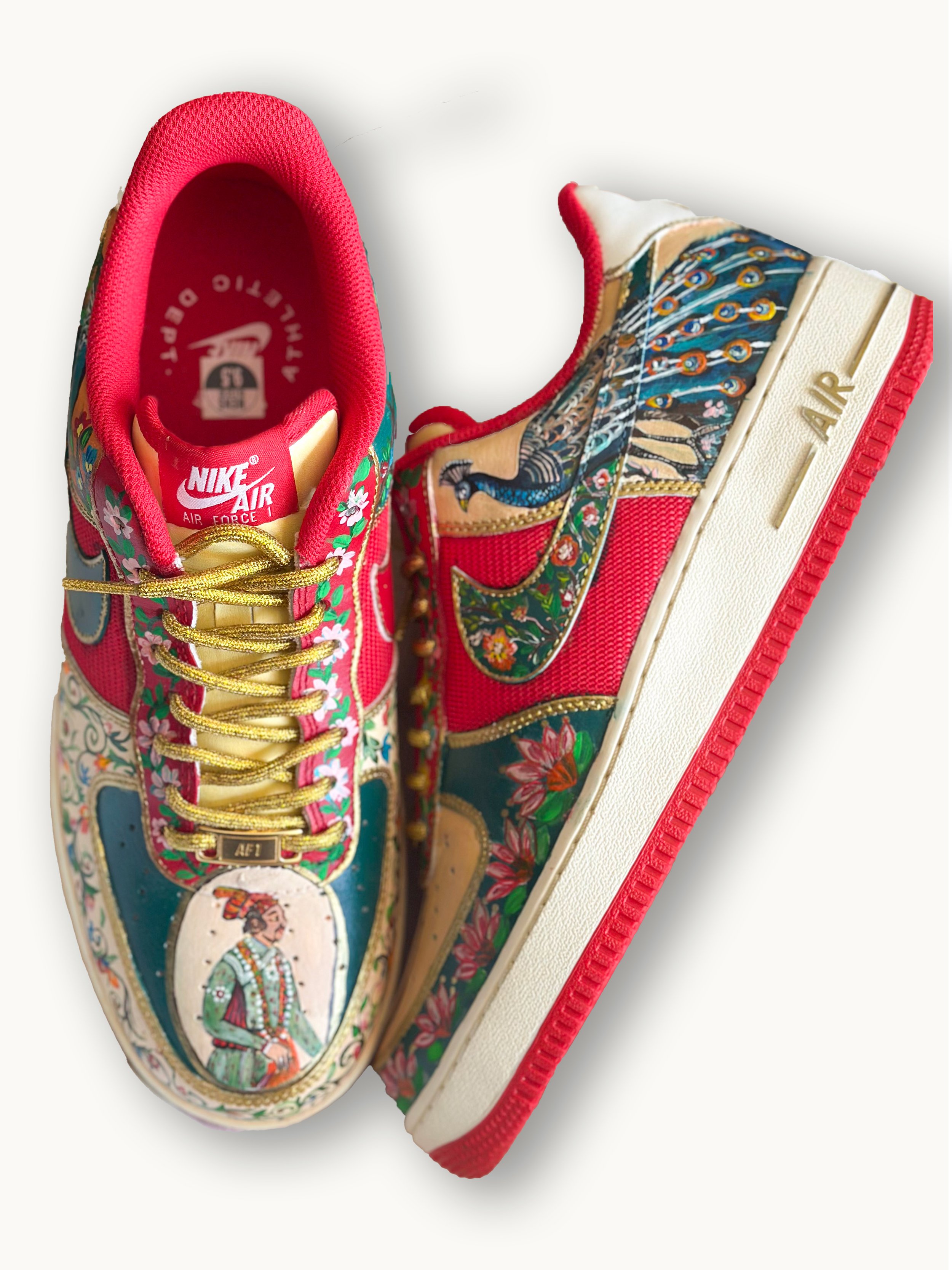 Mughal Art and Architecture Theme Customs. Inspired by Mughal art and architecture of the Islamic era. Nike Af1 painted with Angelus leather paint.