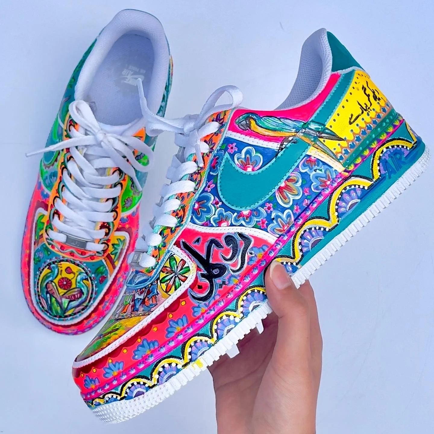 Mughal Art and Architecture Theme Customs. Inspired by Mughal art and architecture of the Islamic era. Nike Af1 painted with Angelus leather paint.